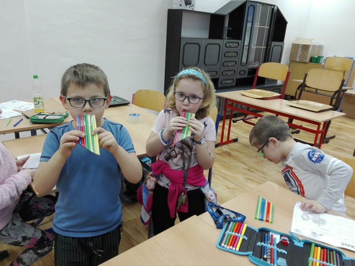 Děti si v rámci lekce vyrobily nejen Panovu flétnu,ale měly také možnost, vyzkoušet sílu svého hlasu na pokusu „Zvuk jako vlnění.“