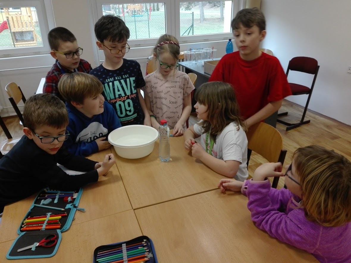 Při dnešní(11.2.2019) lekci kroužku Věda nás baví jsme opět „oprášili“ vědní disciplínu fyziku a s ní spjatý Archimédův zákon.